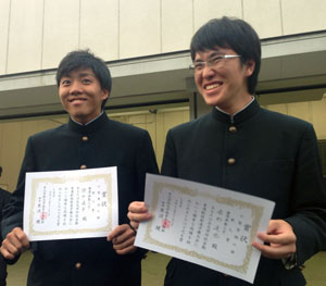 ▲男子小型乗用の部第2位の 戸田(右)と第3位の佐野(左) |