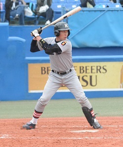 | ▲一回戦で2安打2打点の 活躍をした横尾(総3) |