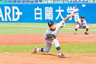 | ▲一回戦で1年生ながら先発し、 リーグ戦初登板初勝利を挙げた関根(環1) |