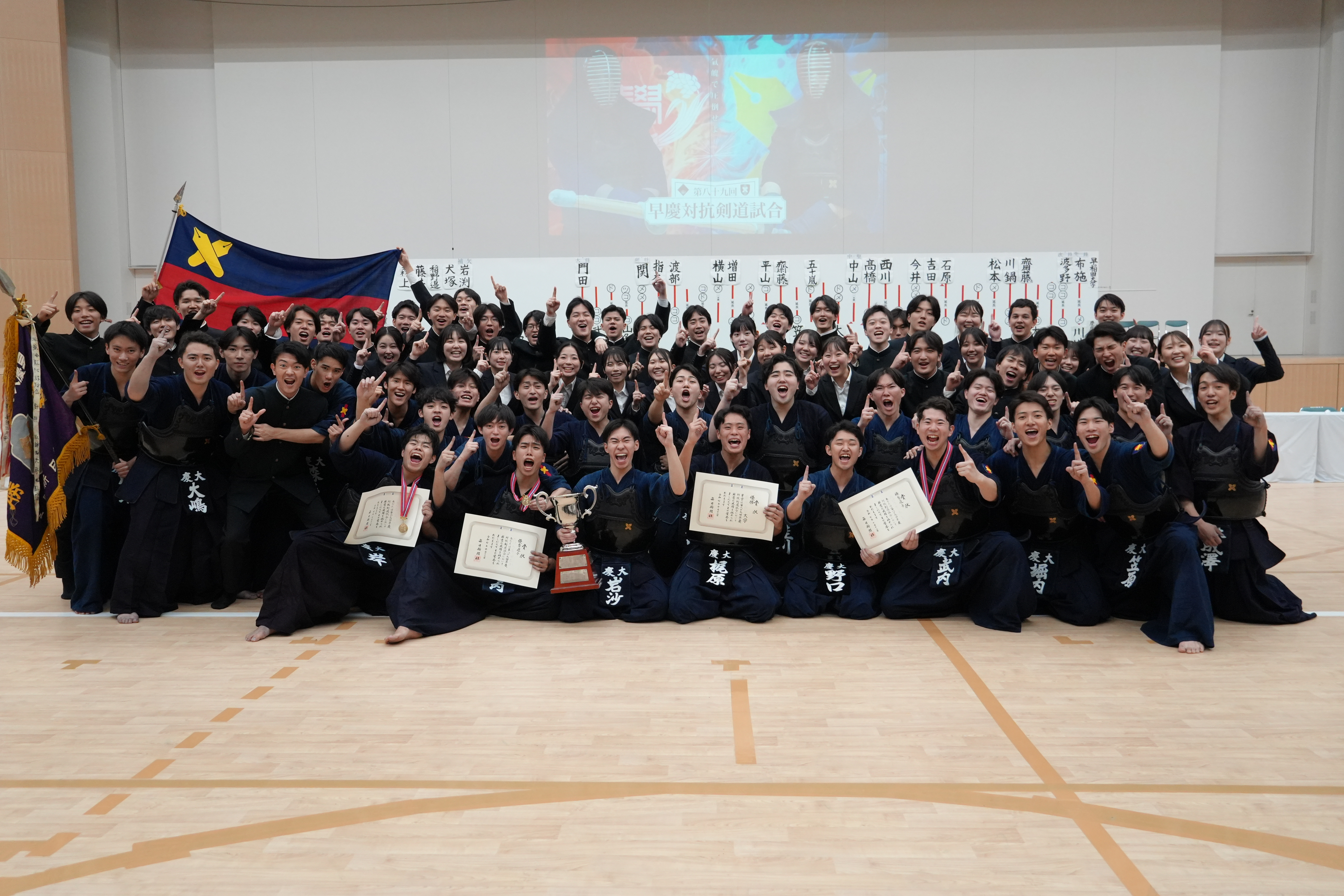 第89回早慶対抗剣道試合は、皆様の応援に支えられ優勝を果たしました。氣魄を胸に全員で戦い抜いた姿はまさにOne Team。
