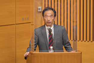 | ▲石田浩之教授(第2部ガイダンス) | ▲石手靖体育研究所所長(第2部ガイダンス) |