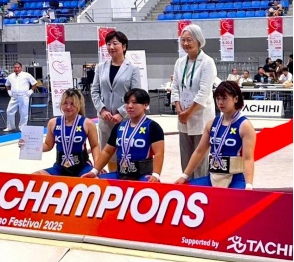 9月20日、アリーナ立川立飛にて開催された第12回全国学生女子相撲選手権大会で、相撲部の長谷川理央君(総4)、鈴木志歩君(総1)、小宮山結月君(総1)が女子団体にて優勝を果たしました。